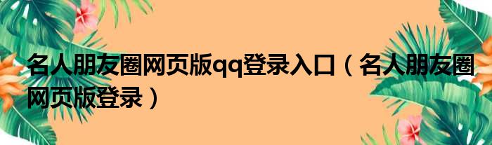 名人朋友圈网页版qq登录入口(名人朋友圈网页版登录)