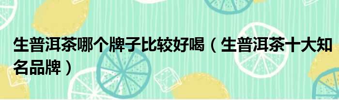 生普洱茶哪个牌子比较好喝(生普洱茶十大知名品牌)