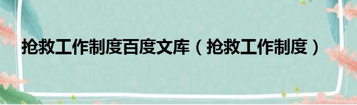 大家好,小东方来为大家解答以上的问题。抢救工作制度百度文库,抢救工作制度这个很多人还不知道,现在让我们一起来看看吧!