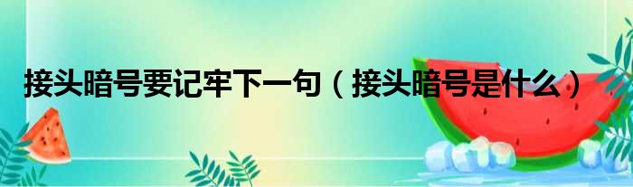 大家好,小东方来为大家解答以上的问题。接头暗号要记牢下一句,接头暗号是什么这个很多人还不知道,现在让我们一起来看看吧!