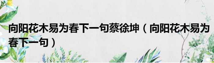 向阳花木易为春下一句蔡徐坤(向阳花木易为春下一句)