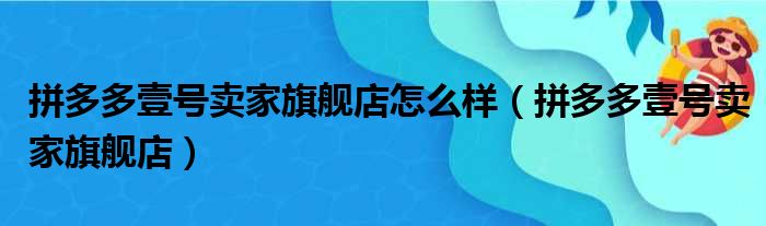 拼多多壹号卖家旗舰店怎么样(拼多多壹号卖家旗舰店)