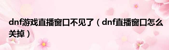 dnf游戏直播窗口不见了(dnf直播窗口怎么关掉)