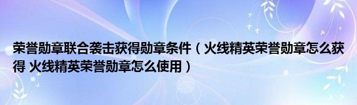 荣誉勋章联合袭击获得勋章条件(火线精英荣誉勋章怎么获得 火线精英荣誉勋章怎么使用)