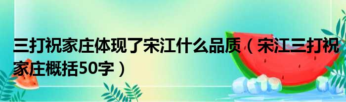 三打祝家庄体现了宋江什么品质(宋江三打祝家庄概括50字)