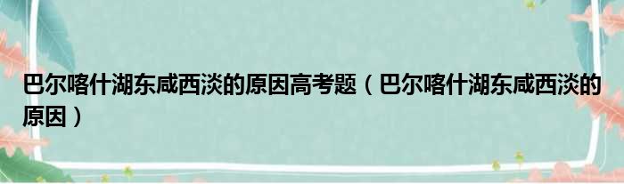 巴尔喀什湖东咸西淡的原因高考题(巴尔喀什湖东咸西淡的原因)