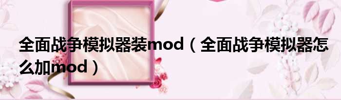 全面战争模拟器装mod(全面战争模拟器怎么加mod)