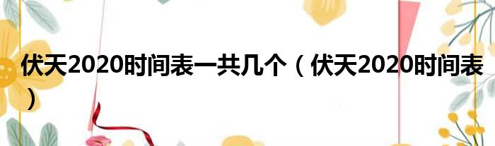 大家好,小东方来为大家解答以上的问题。伏天2020时间表一共几个,伏天2020时间表这个很多人还不知道,现在让我们一起来看看吧!