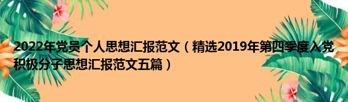 2022年党员个人思想汇报范文(精选2019年第四季度入党积极分子思想汇报范文五篇)