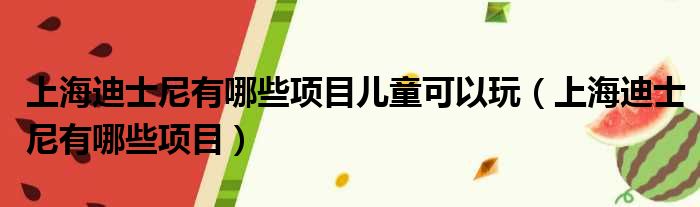 上海迪士尼有哪些项目儿童可以玩(上海迪士尼有哪些项目)