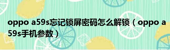 oppo a59s忘记锁屏密码怎么解锁(oppo a59s手机参数)