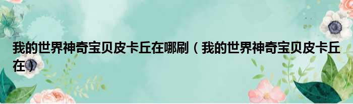 我的世界神奇宝贝皮卡丘在哪刷(我的世界神奇宝贝皮卡丘在)
