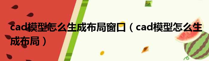 cad模型怎么生成布局窗口(cad模型怎么生成布局)