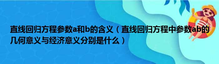 导读 大家好,小东方来为大家解答以上的问题。直线回归方程参数a和b的含义,直线回归方程中参数ab的几何意义与经济意义分别是什么这个很多人还不