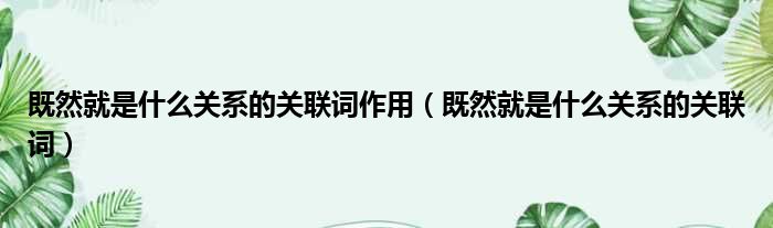 既然就是什么关系的关联词作用(既然就是什么关系的关联词)