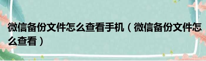 微信备份文件怎么查看手机(微信备份文件怎么查看)