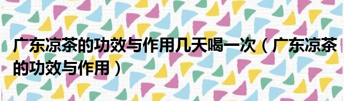 广东凉茶的功效与作用几天喝一次(广东凉茶的功效与作用)