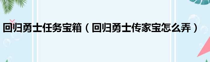 回归勇士任务宝箱(回归勇士传家宝怎么弄)