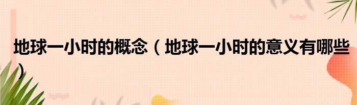 地球一小时的概念(地球一小时的意义有哪些)
