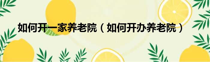 导读 大家好,小东方来为大家解答以上的问题。如何开一家养老院,如何开办养老院这个很多人还不知道,现在让我们一起来看看吧!1、一、办理养老院