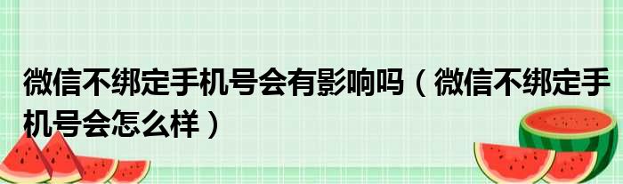 微信不绑定手机号会有影响吗(微信不绑定手机号会怎么样)