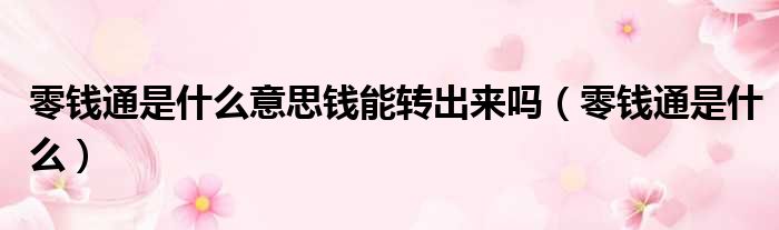 零钱通是什么意思钱能转出来吗(零钱通是什么)