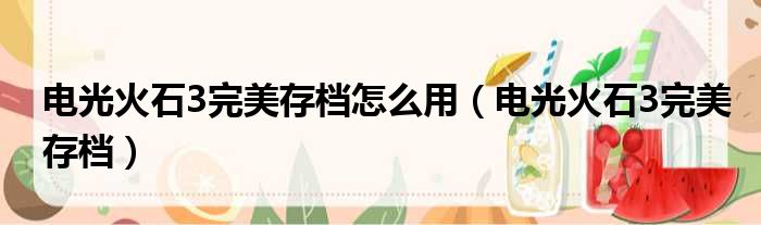 电光火石3完美存档怎么用(电光火石3完美存档)