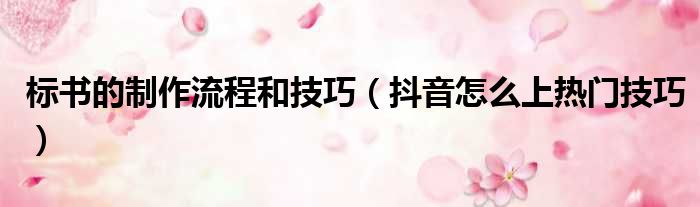 标书的制作流程和技巧(抖音怎么上热门技巧)