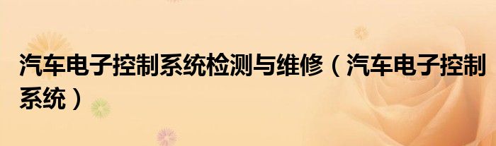 汽车电子控制系统检测与维修(汽车电子控制系统)