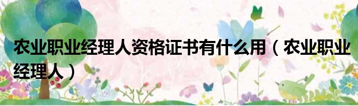 农业职业经理人资格证书有什么用(农业职业经理人)