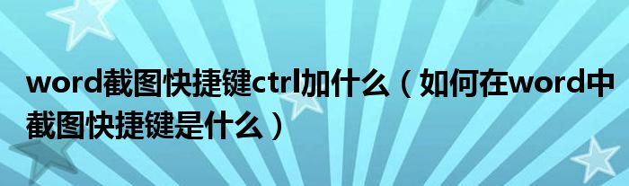 word截图快捷键ctrl加什么(如何在word中截图快捷键是什么)