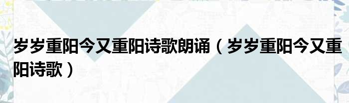 岁岁重阳今又重阳诗歌朗诵(岁岁重阳今又重阳诗歌)