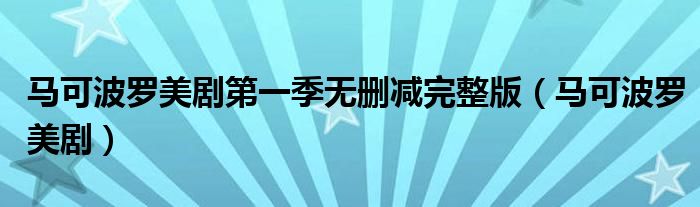 马可波罗美剧第一季无删减完整版(马可波罗美剧)