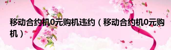 大家好,小东方来为大家解答以上的问题。移动合约机0元购机违约,移动合约机0元购机这个很多人还不知道,现在让我们一起来看看吧!