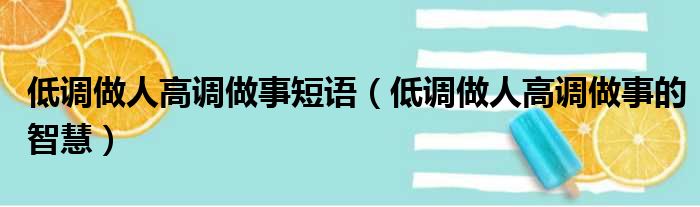 低调做人高调做事短语(低调做人高调做事的智慧)