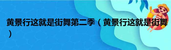 大家好,小东方来为大家解答以上的问题。黄景行这就是街舞第二季,黄景行这就是街舞这个很多人还不知道,现在让我们一起来看看吧!