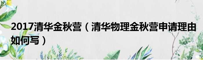 2017清华金秋营(清华物理金秋营申请理由如何写)