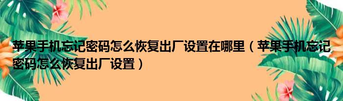 苹果手机忘记密码怎么恢复出厂设置在哪里(苹果手机忘记密码怎么恢复出厂设置)