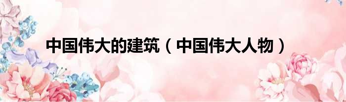 大家好,小东方来为大家解答以上的问题。中国伟大的建筑,中国伟大人物这个很多人还不知道,现在让我们一起来看看吧!