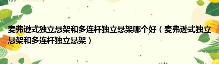 麦弗逊式独立悬架和多连杆独立悬架哪个好(麦弗逊式独立悬架和多连杆独立悬架)