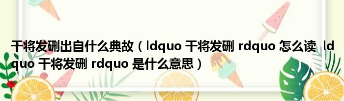 干将发硎出自什么典故(ldquo 干将发硎 rdquo 怎么读 ldquo 干将发硎 rdquo 是什么意思)