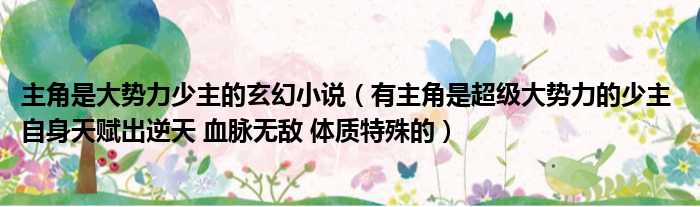 主角是大势力少主的玄幻小说(有主角是超级大势力的少主 自身天赋出逆天 血脉无敌 体质特殊的)