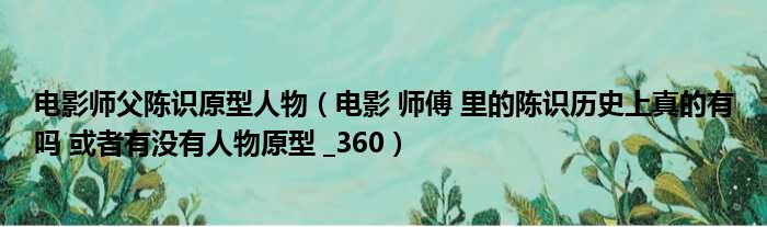导读 大家好,小东方来为大家解答以上的问题。电影师父陈识原型人物,电影 师傅 里的陈识历史上真的有吗 或者有没有人物原型 _360这个很多人