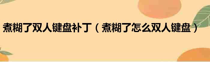 煮糊了双人键盘补丁(煮糊了怎么双人键盘)