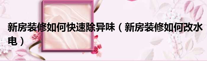 大家好,小东方来为大家解答以上的问题。新房装修如何快速除异味,新房装修如何改水电这个很多人还不知道,现在让我们一起来看看吧!