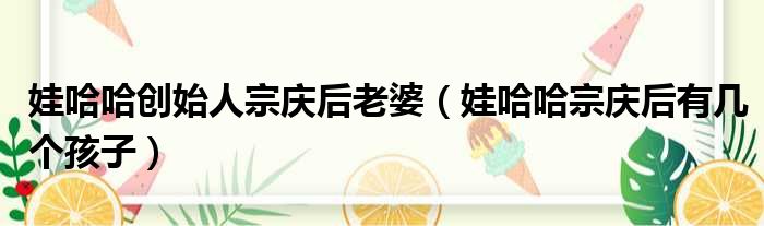 娃哈哈创始人宗庆后老婆(娃哈哈宗庆后有几个孩子)