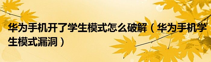 华为手机开了学生模式怎么破解(华为手机学生模式漏洞)