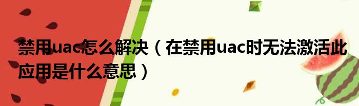 禁用uac怎么解决(在禁用uac时无法激活此应用是什么意思)