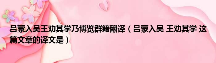 吕蒙入吴王劝其学乃博览群籍翻译(吕蒙入吴 王劝其学 这篇文章的译文是)