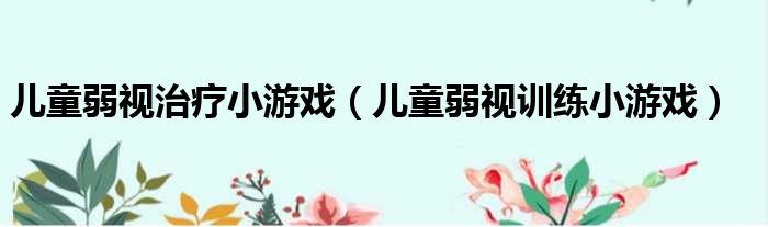 儿童弱视治疗小游戏(儿童弱视训练小游戏)